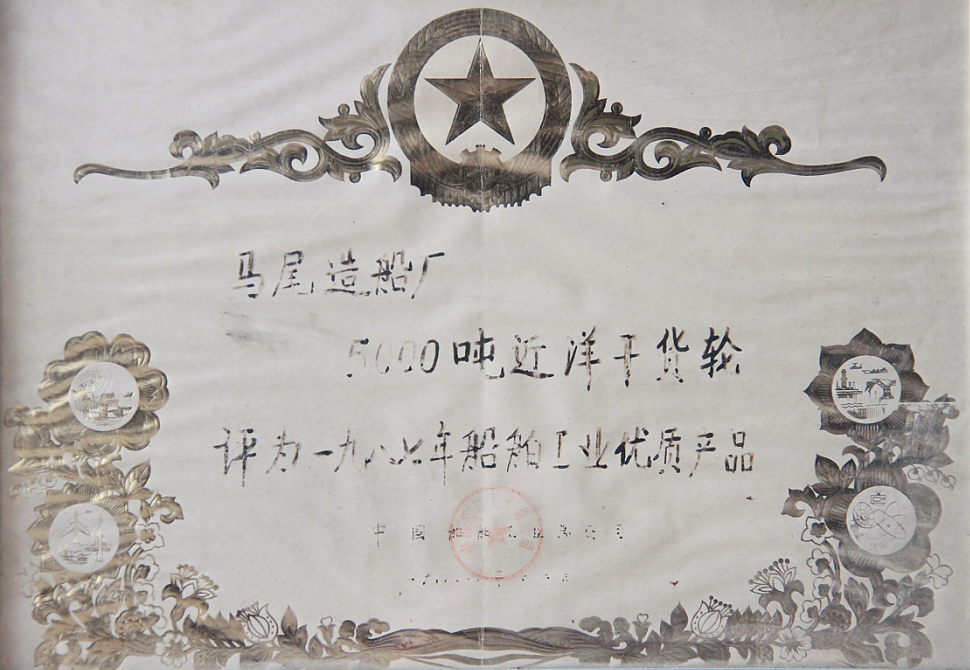 馬尾造船“紅旗154 號(hào)”5000 噸近洋干貨輪獲中國船舶工業(yè)總公司授予的“一九八七年船舶工業(yè)優(yōu)質(zhì)產(chǎn)品”稱號(hào) -