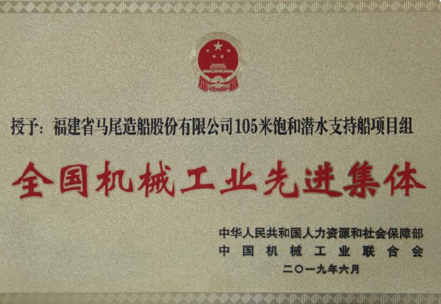 馬尾造船105 米飽和潛水支持船項(xiàng)目組榮獲“全國機(jī)械工業(yè)先進(jìn)集體”稱號(hào)