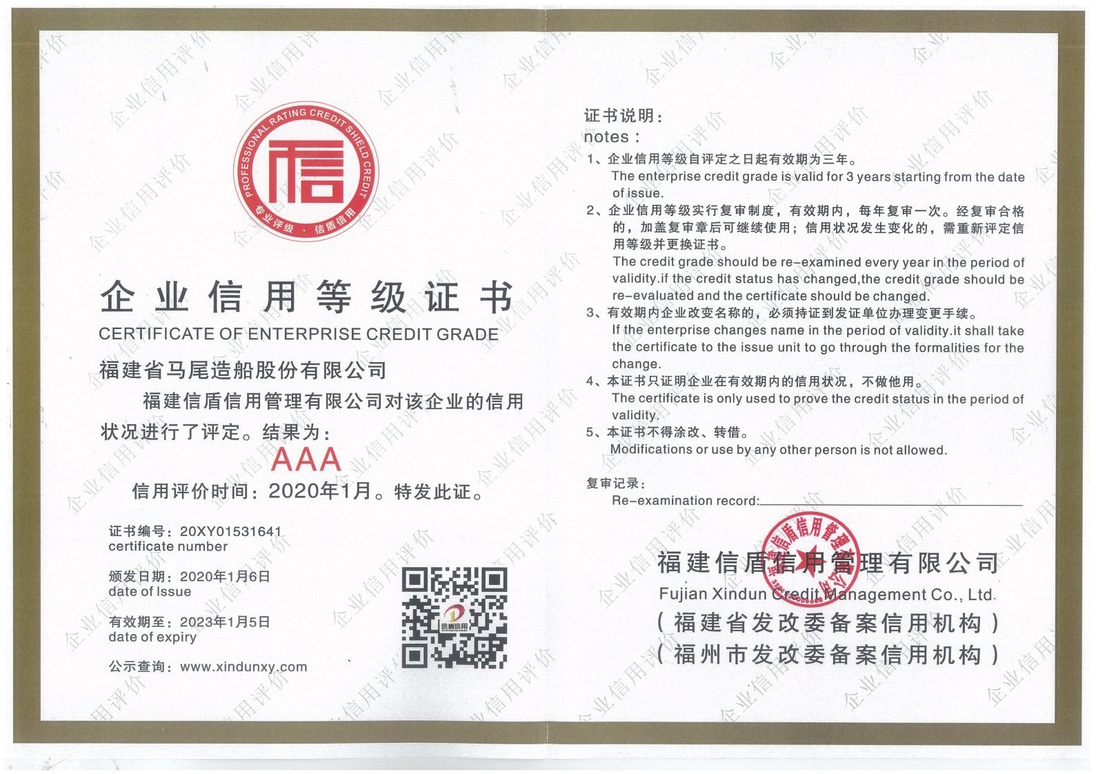 2020-2023企業信用等級證書