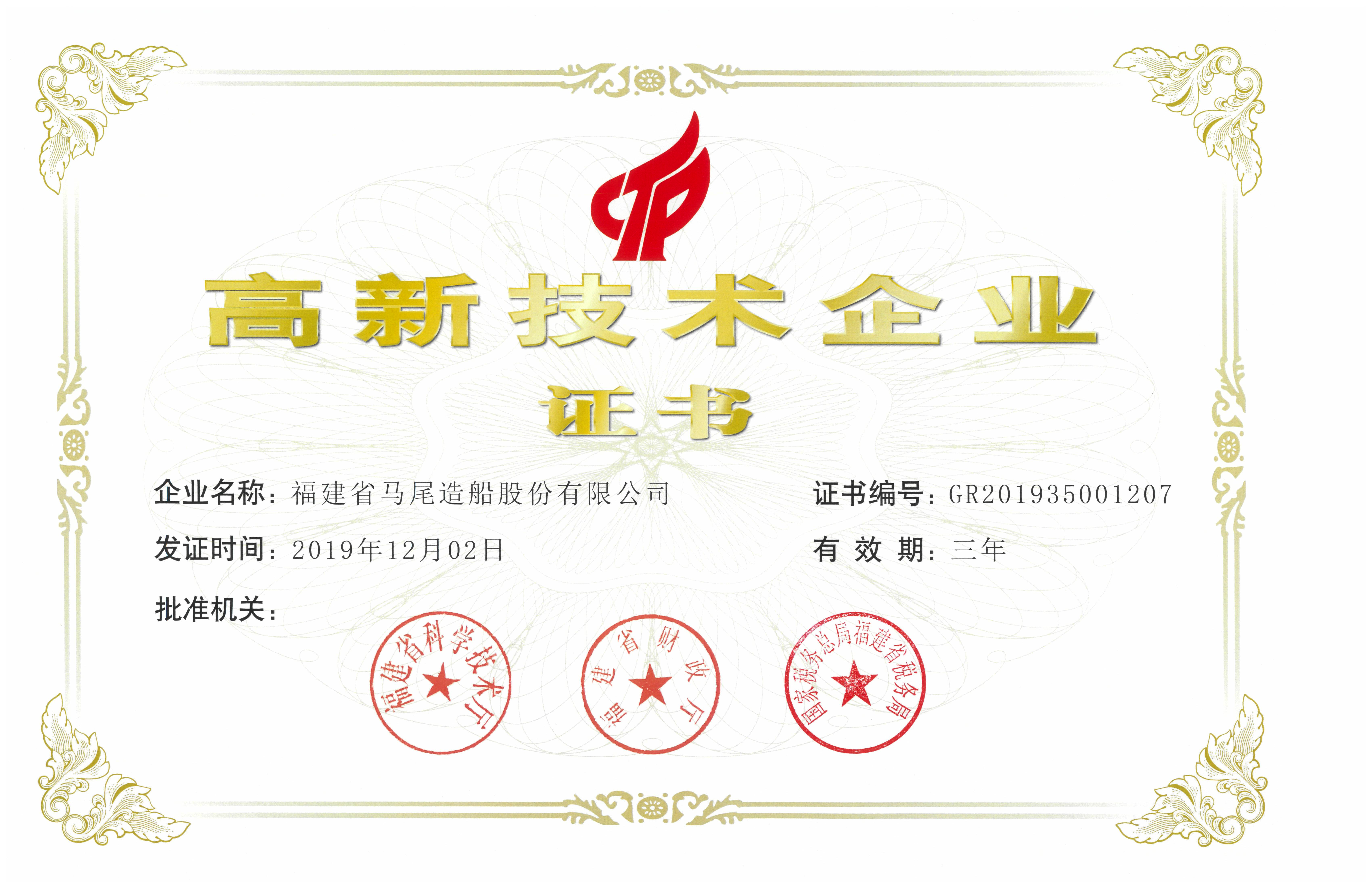 高新技術企業證書