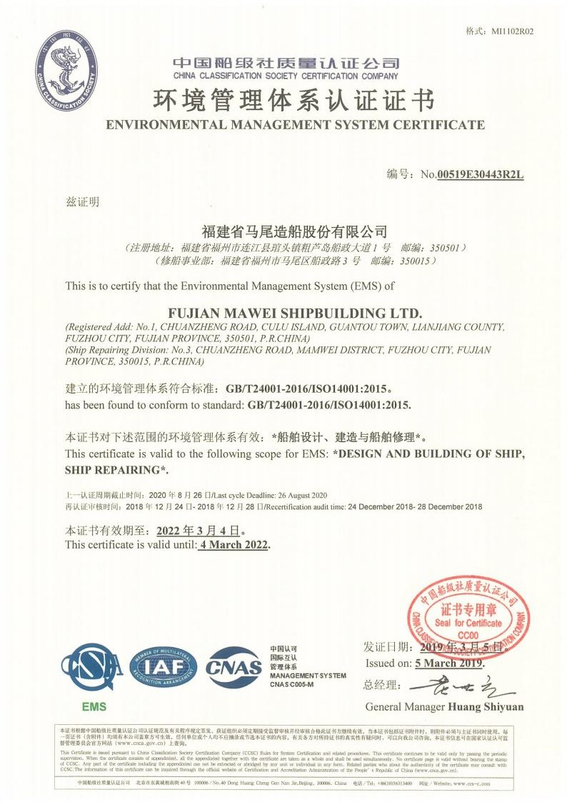 環境管理體系認證證書